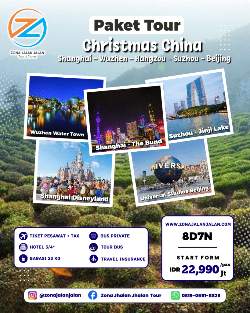 Nikmati pengalaman tak terlupakan menjelajahi pesona China dengan paket tour lengkap dan nyaman. Kunjungi destinasi ikonik seperti Tembok Besar China, Kota Terlarang, Shanghai, dan Guilin, sambil menikmati keunikan budaya, kuliner autentik, dan pemandangan menakjubkan.